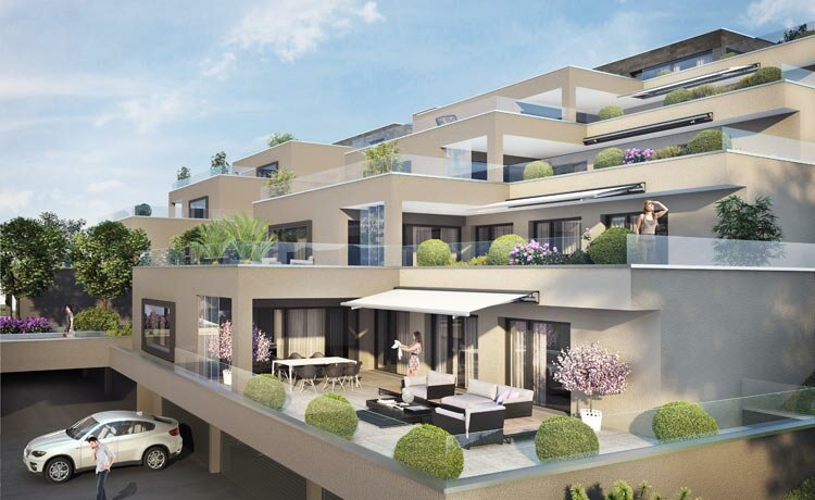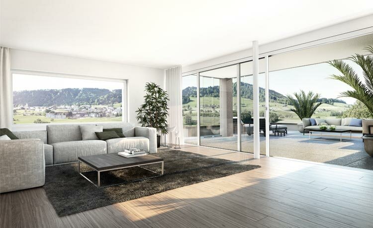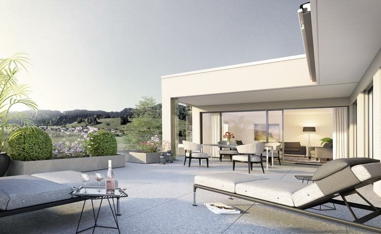 An einmaliger Südlage entstehen echte Sonnenperlen der Wohnqualität. Wo die Sonne viel scheint, sind grosse Aussenflächen besonders willkommen.